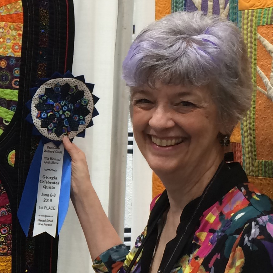 By Gail Scogin Described as a dedicated volunteer and unsung hero, Carolyn Powers has held a number of Guild positions during her nearly 20-year membership―including (but not limited to) Treasurer, Welcome Committee Chair, Quilt Show Chair, and President. Carolyn enjoys working with great people and giving back to the Guild using her many years of business experience to help things run efficiently. Originally from Mount Airy, NC, Carolyn earned a Math undergraduate degree from Emory University, later getting an MBA and a CPA. During her career, she melded her computer background with a love of fashion and fabric, becoming the